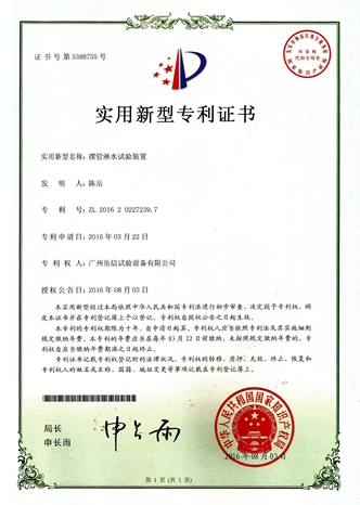 • 淋雨試驗(yàn)裝置-實(shí)用新型專利證書(shū)【岳信公司】