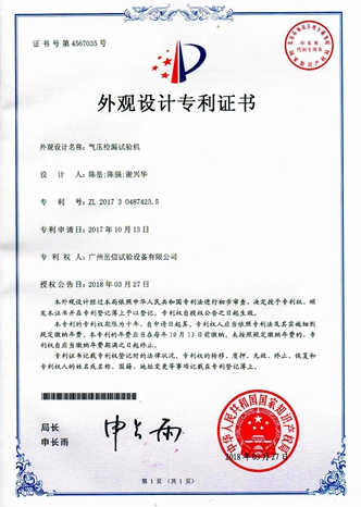 • 氣壓檢漏試驗(yàn)機(jī)-外觀專利證書(shū)【岳信公司】